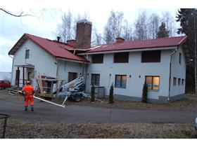 Enso-Gutzeit Oy rakennutti Laitaatsiltaan teollisuusrakennusten lisäksi vaaleaksi rapatun sauna-pyykkituvan vuonna 1952. Rakennuksen suunnittelusta vastasi Enso-Gutzeit Oy:n laivasto-osasto, ja sen piirsi Unto Kauppinen vuonna 1950. Uusi sauna-pesutupa korvasi samalla alueella olleen vanhan pesutuvan.